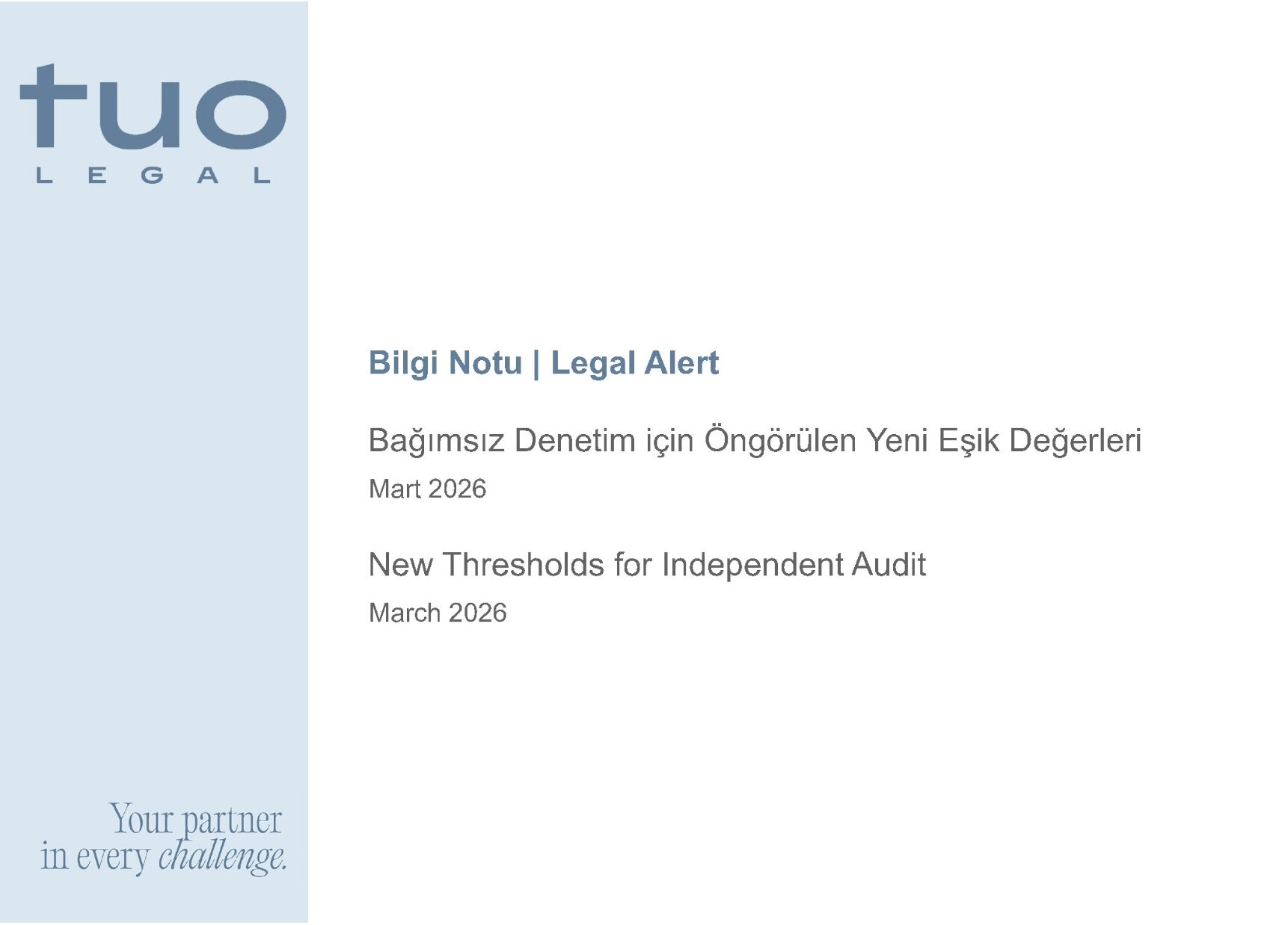 Pursuant to Article 397 of the Turkish Commercial Code No. 6102, the Decision on the Amending the Criteria for Determining Companies Subject to Independent Audit (“Decision”) was published in the Official Gazette dated 17 March 2026 and entered into force.